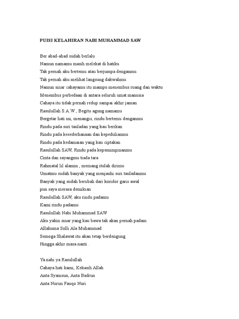 Puisi Kelahiran Nabi Muhammad Saw Pdf