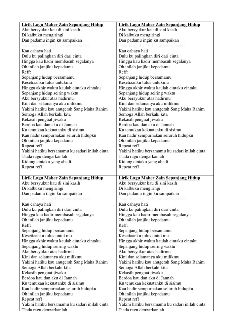 Lirik Lagu Maher Zain Sepanjang Hidup Pdf