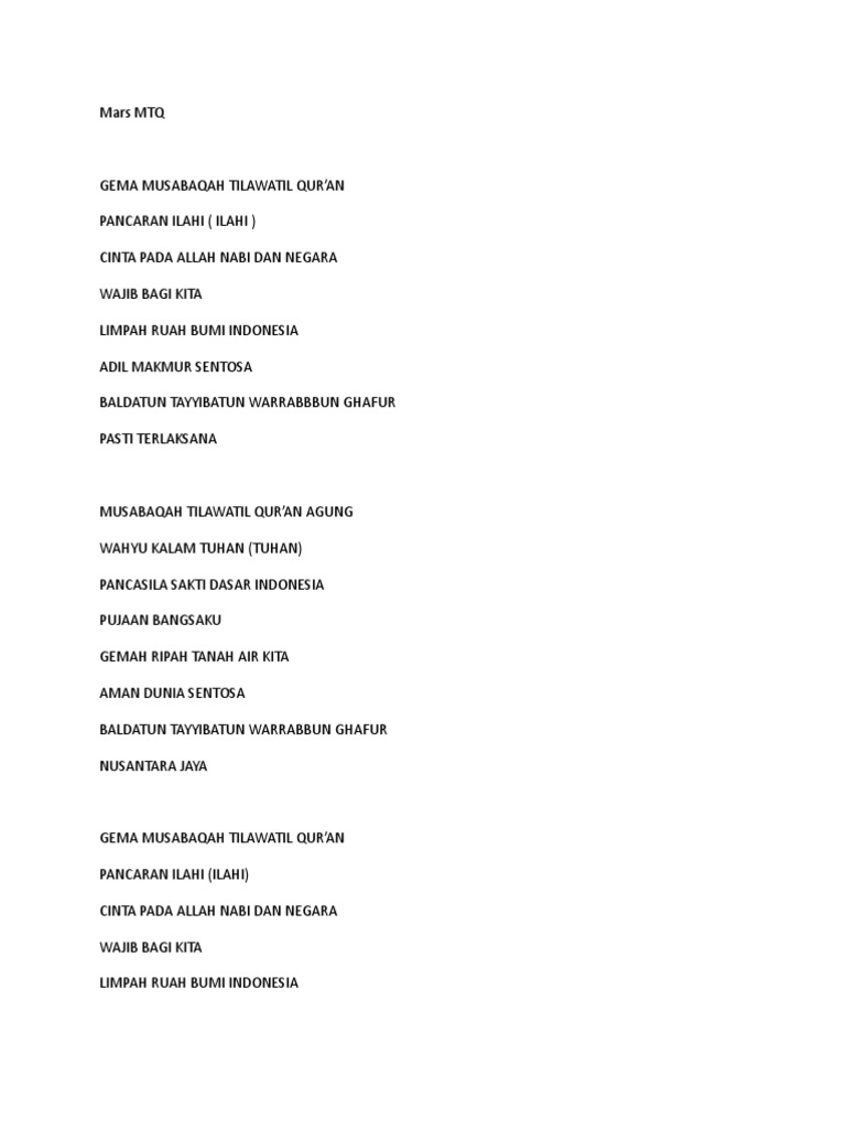 Lirik Lagu Mars Mtq Pdf