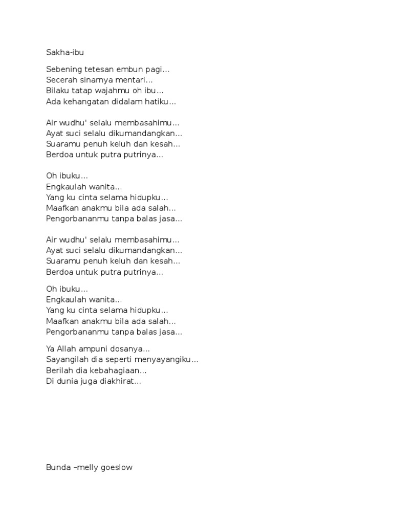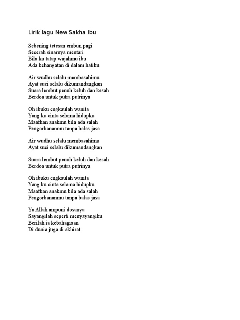 Lirik lagu sebening embun pagi. Berikut lirik dan chord lagu Ibu dari New Sakha. SonoraID - Lirik Lagu Ibu Yang Dipopulerkan Oleh Sakha Sebening tetesan embun pagi Secerah sinarnya mentari Bila ku tatap wajahmu ibu Ada kehangatan di dalam hatiku Oh ibuku engkaulah wanita Yang ku cinta selama hidupku Maafkan anakmu bila ada salah. TIPS PENCARIAN LIRIK FAVORIT ANDA.