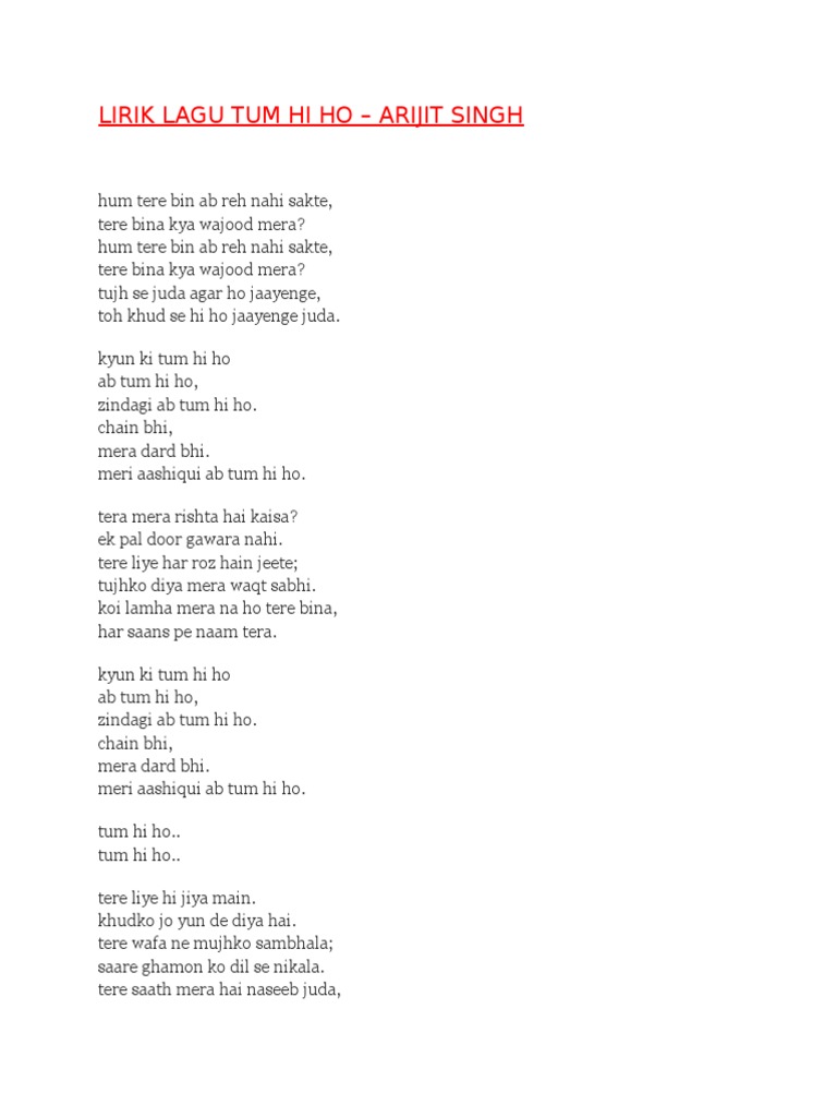 Lagu Tum Hi Ho Lirik Dan Artinya