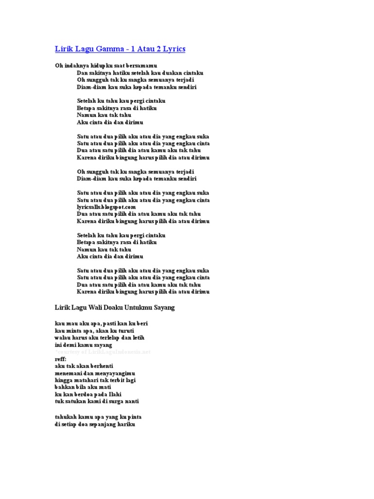Lirik Lagu 1 Atau 2 Gamma Band Pdf