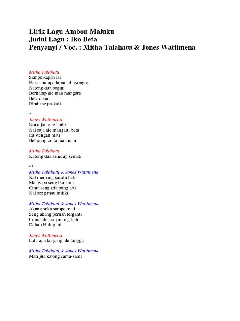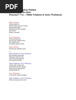 Lirik Lagu Ambon Maluku Pdf