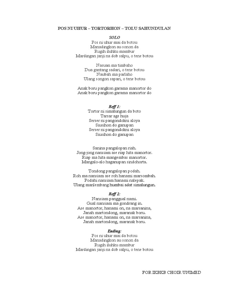 Lirik lagu tolu sahundulan. Riap ma hita mangembas manortor. Nata Pe Jugul Au Cipt. Lirik lagu simalungun Imfrantoni purba - Goluh ni.
