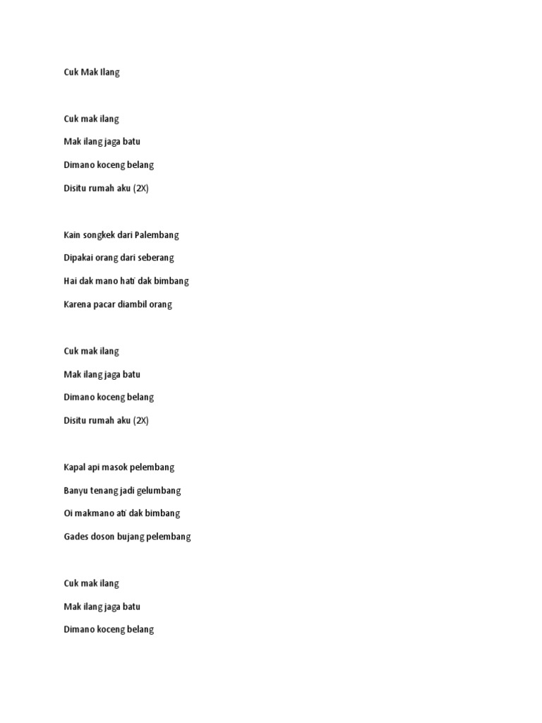 Lirik Lagu Cup Mak Ilang