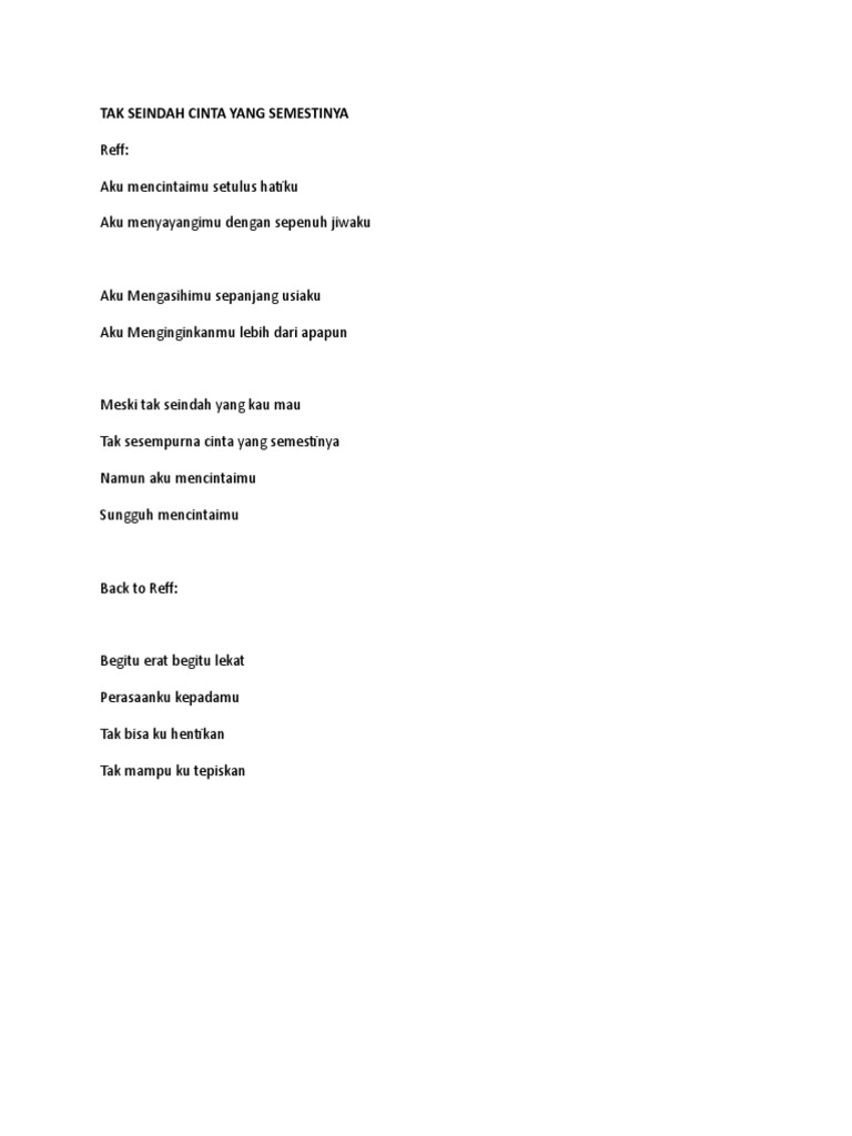 Maafkan aku tak punya hati tuk cintaimu Dirimu yang membuatku terluka Dan menangis. Kasihku maafkanlah aku yang selalu membuatmu menangis terluka hatimu aku mohon maafkanlah semua salahku padamu oh kasihku oh sayangku oh kasihku oh.